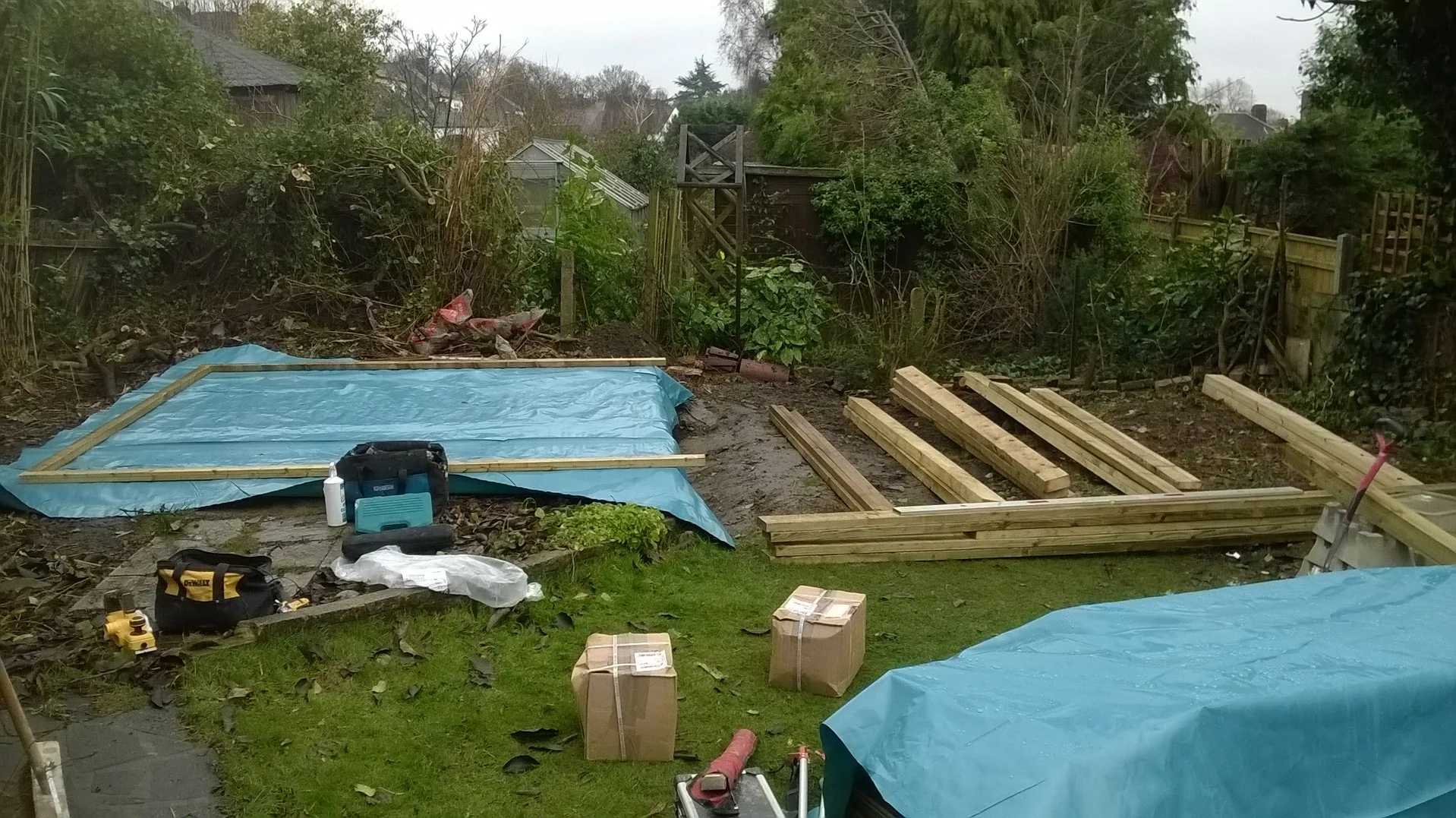 In November 2015 we were introduced to a client with a split level site, part existing raised concrete base and part lawn area, with significant left to right fall of nearly half a meter.
